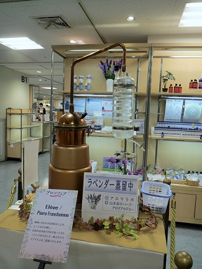 アロマラボさんのブースで水蒸気蒸留をされていました。
