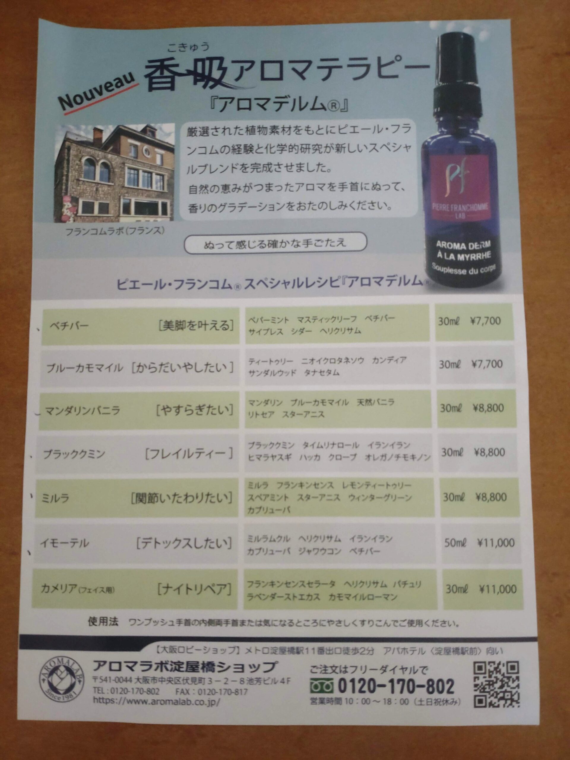 山本先生のアロマラボでは7種類のアロマデルムを取り扱っておられます。