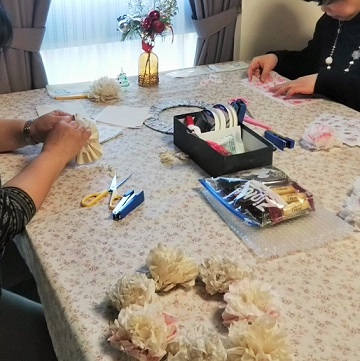 楽しそうにペーパーフラワーを作っていました。