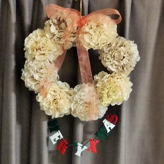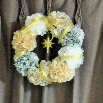 ペーパーナプキンでリースを作っていますが、