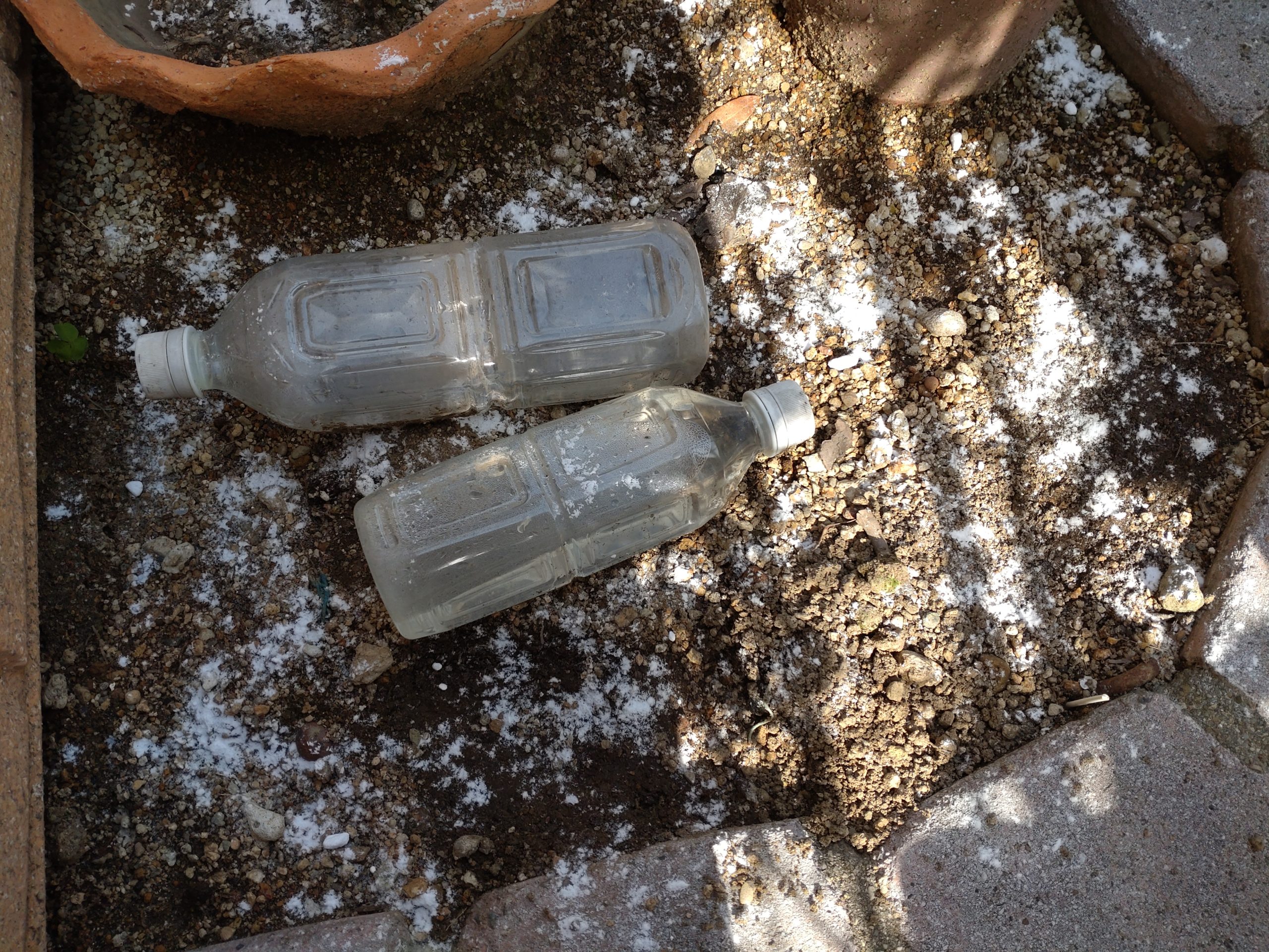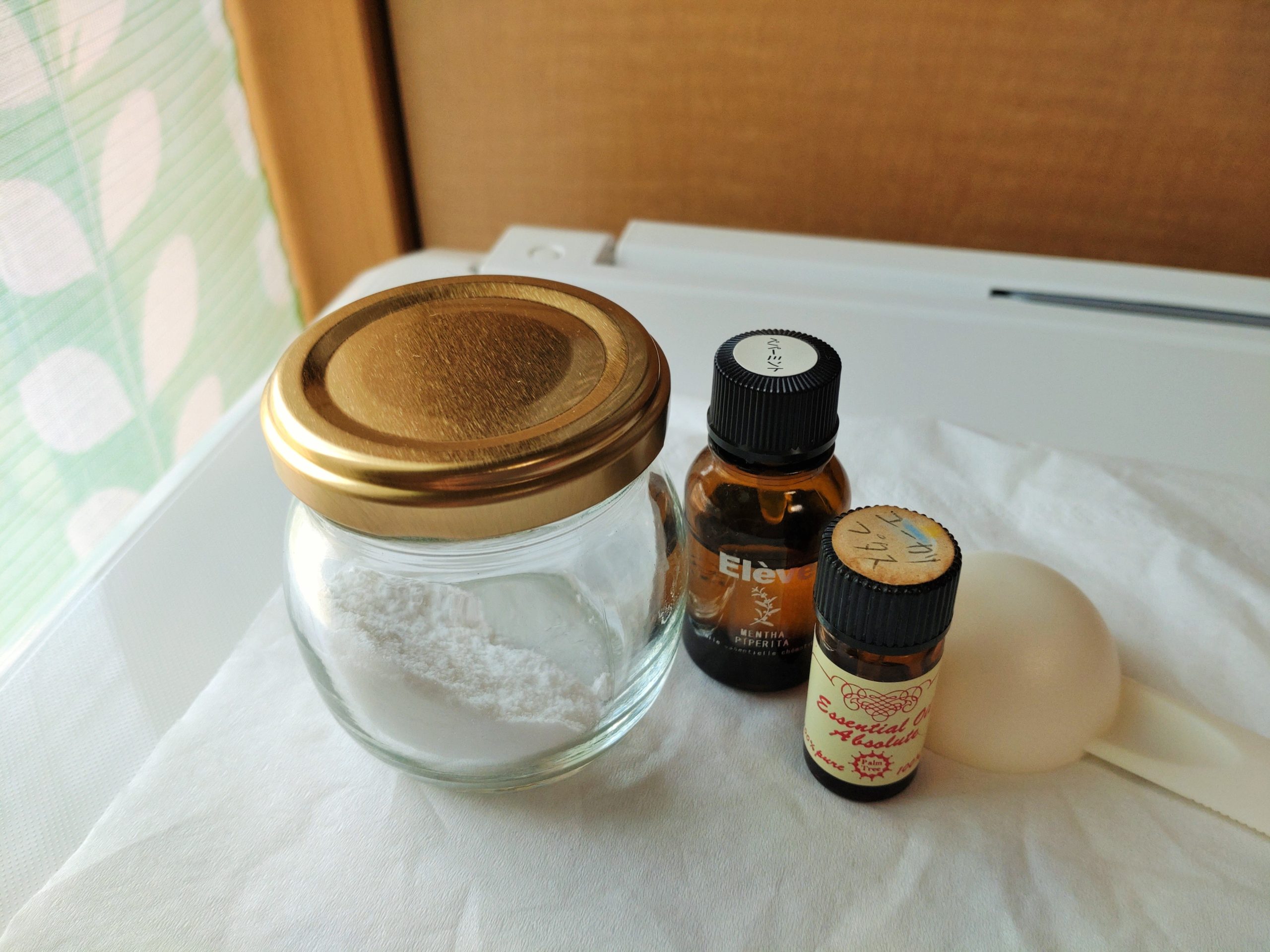 取りあえず、重層にあまり使わなくなった精油で猫避けを作りました。
