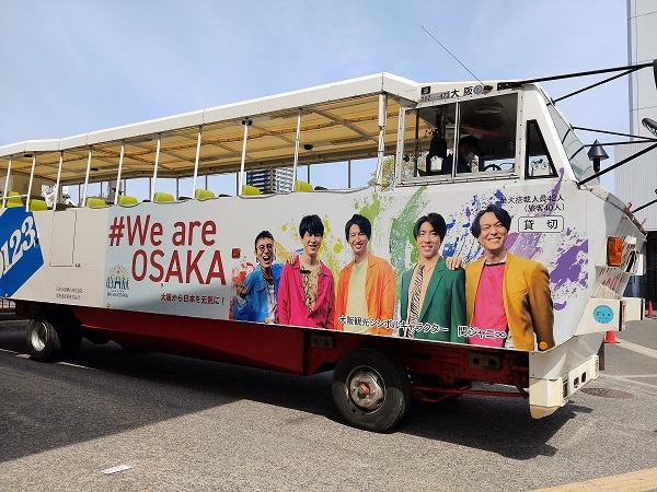 天満橋の周りはバスで走り、大川では船になる面白い乗り物です。